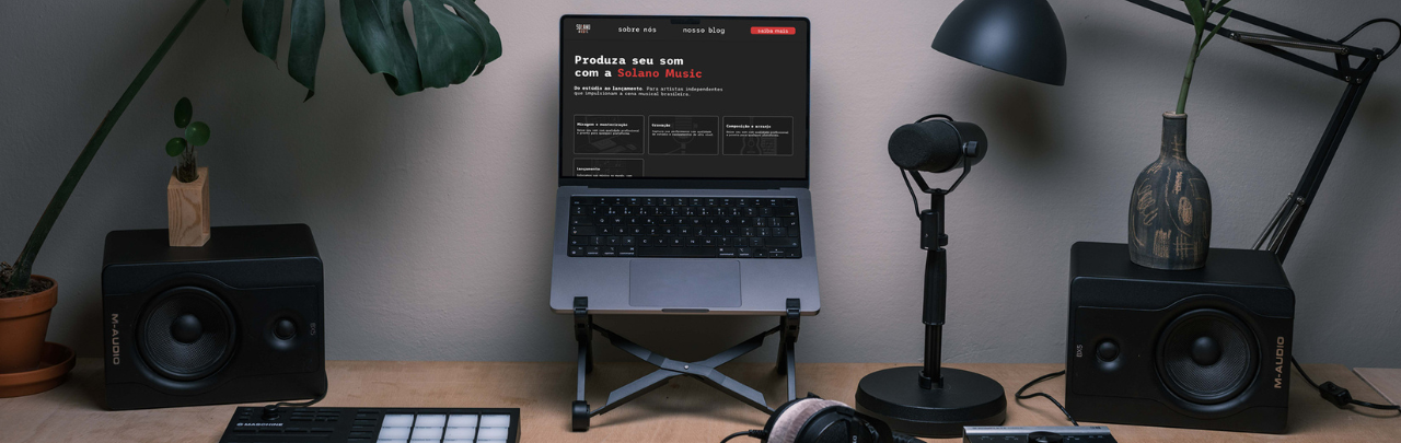 Site otimizado e responsivo para a marca Solano Music, focada em produção musical e promoção de artistas da cena cultural local